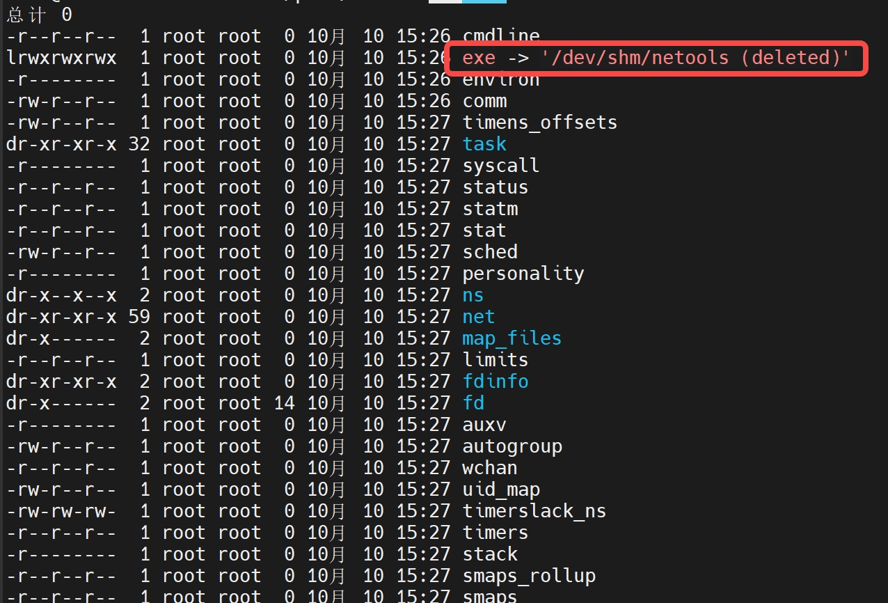 可以看到可以这货将exe文件软链接到’/dev/shm/netools(deleted)’